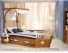 Гардеробная с односпальной кроватью и письменным столом. Отделка натуральным красным деревом.