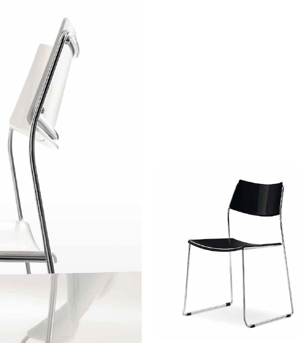 Великолепный стул со стальным каркасом. Сиденье и спинка сделаны из глянцевого пластика.